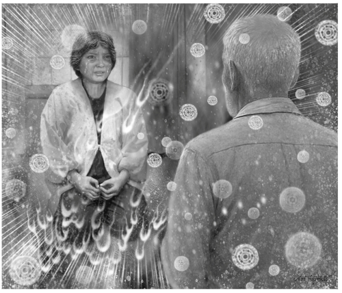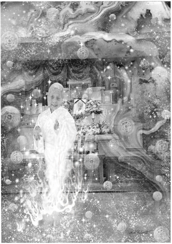 ![]() 1.彼女の両手を胸の上で合わせ、“彼女から離れてください。そして、あなたが天国へ導かれますように”と、心の中で祈りつづけながら。しばらくすると、彼女の体から丸い光が抜けでたかと思うと、その丸い光は部屋の壁をつたい、天井の角から抜けでて消えてしまいました。 |