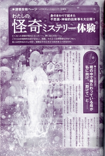2019年(平成31年・令和元年) 不二本 蒼生 72才 「あなたの怪奇ミステリー体験」のイラスト3点 月刊「ムー」12月号No.469 学研プラス 2019(Heisei 31,Reiwa 1) Aoi Fujimoto 72years old 3text illustration of "Your strange mystery experience" Monthly "Mu12" November issued Gakken Plus Co., Ltd. |